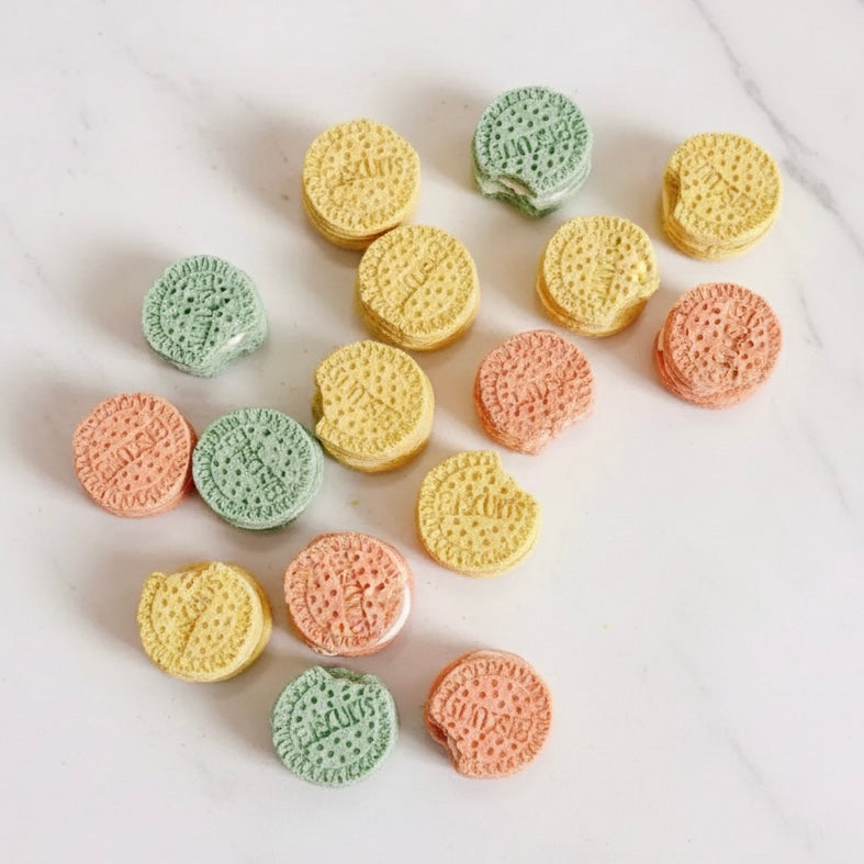 Treat your furry friends to our Mini Cream Oreos — the cutest sandwich-style snacks with a crispy chicken outer layer and a creamy goat milk filling. Wholesome, fun, and irresistible, these Oreo-inspired bites are a sweet way to make snack time extra special.
